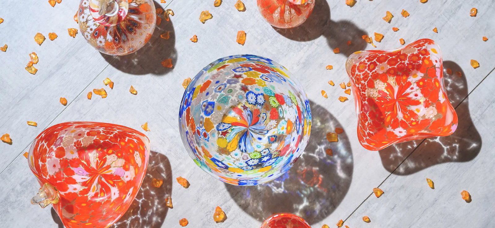 クリスマスからお正月まで、季節の移ろいをガラスで彩ってみませんか。ヴェネチアンガラスの吹きガラスツリーが輝き、ドイツのクリスマスマーケットを思わせるチャーミングなアクセサリーが冬の装いに華を添えます。新年には、干支のガラスオブジェと、大正浪漫を感じる干支リキュールグラスをご用意。家族の干支を飾るもよし、集いの席で干支グラスで乾杯するもよし。祝いの季節を、ガラスの輝きで豊かに。