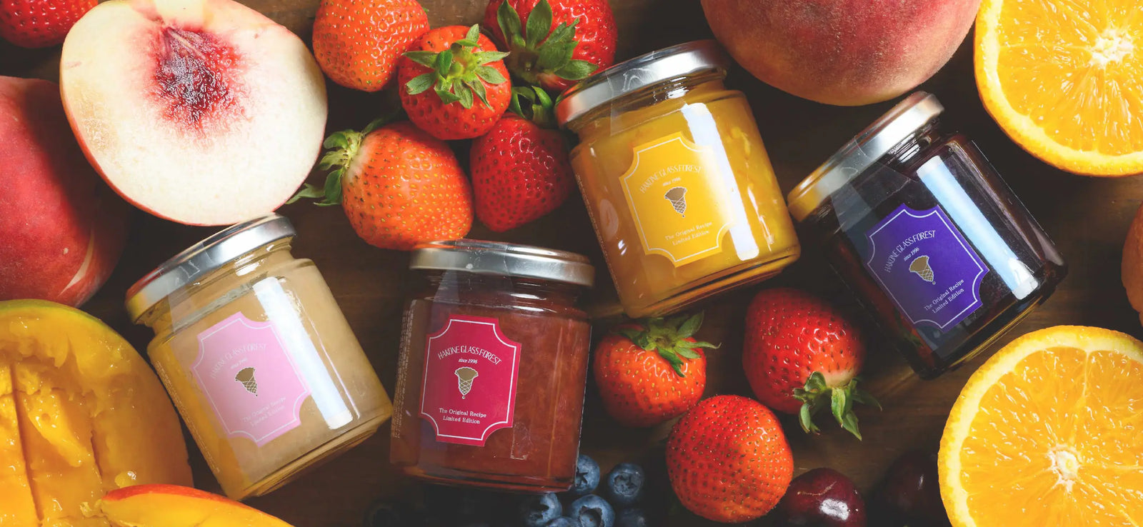 ガラスが生み出す眩い光。食卓の笑顔に彩りを添えるジャムやドレッシング。私たちが大切にしてきた感動のおもてなしを、ご自宅で、贈り物で、どうぞお楽しみください。