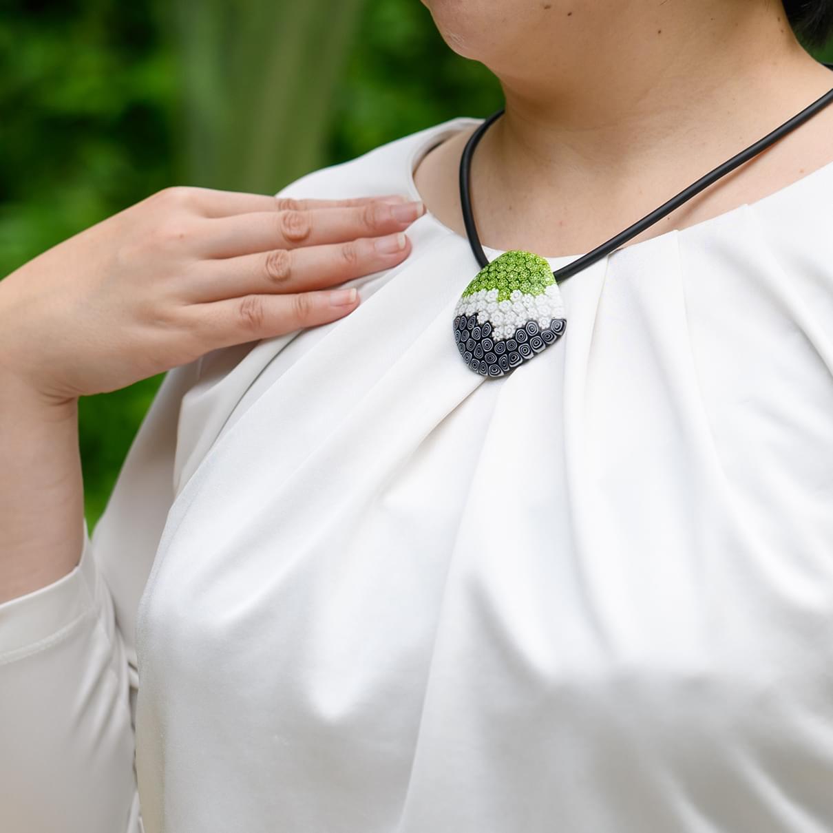 シックなベースカラーに控えめなムリーナ模様をあしらったアクセサリー。華やかさを抑えた落ち着いた色調が、知的で大人の魅力を引き立てます。アンティークモダンな趣を漂わせ、装いに上品なアクセントを添える逸品。日常から特別な場まで幅広く活躍し、洗練された女性にふさわしい気品を宿しています。