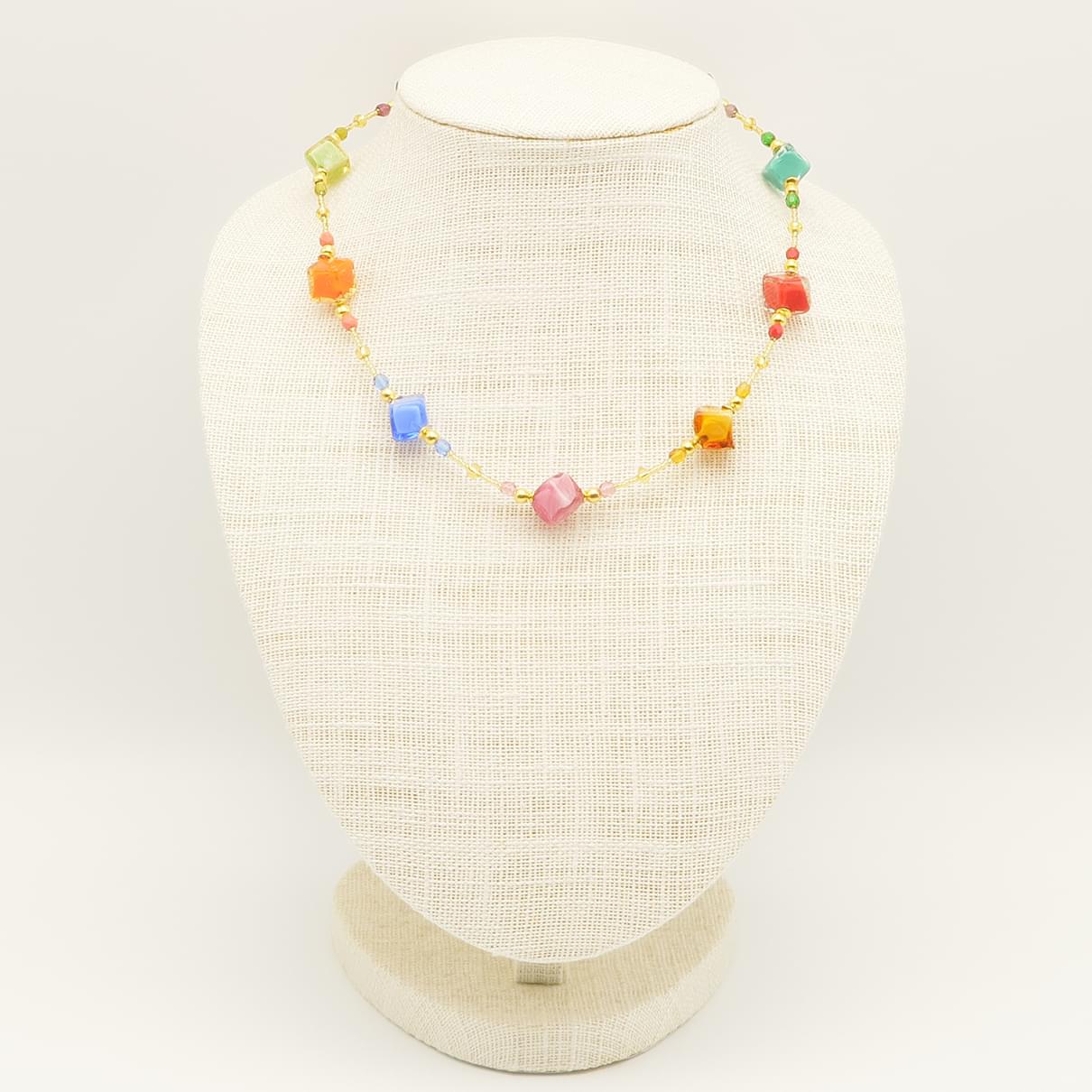 「ガラスキューブ」は、色ガラスの芯を透明なガラスで包み込んだ立方体のアクセサリー。軽やかな色彩のコントラストが生み出すポップでカジュアルな表情は、日常の装いに遊び心を添えます。ヴェネチアンガラスならではのみごとな色合いは、身に着けるだけで気分も明るく彩るチャーミングな逸品です。