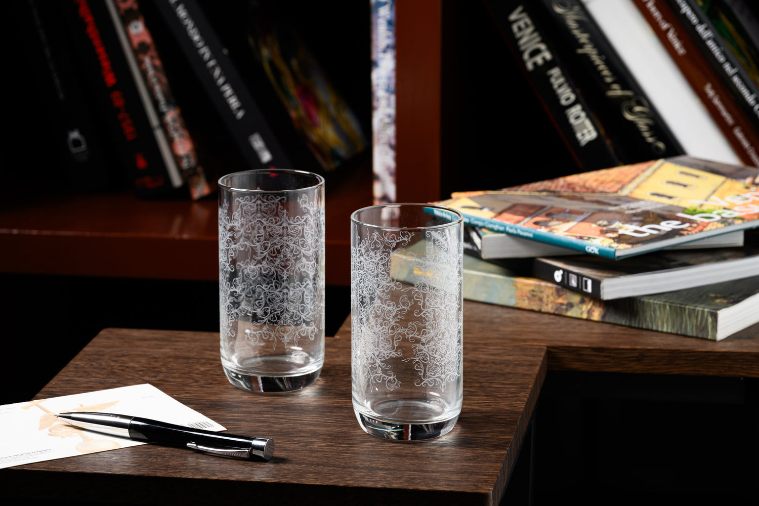 ヨーロッパの伝統とモダンが調和するグラスコレクション。ヨーロッパのエッセンスを取り入れたデザインは、テーブルに洗練された表情を与えます。繊細なアラベスク模様がガラスの透明感と響き合い、飲み物をより美しく演出。日常使いに華やぎを添え、特別なひとときにもふさわしい存在です。上質を求める大人にこそ使っていただきたいシリーズです。