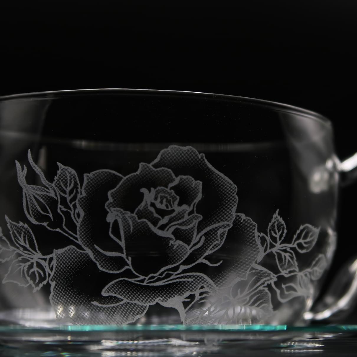箱根ガラスの森美術館の名物、薔薇庭園の風景を映すように仕立てられた逸品。耐熱ガラスに施された繊細な薔薇模様が、紅茶やハーブティーを注ぐたびに華やぎを広げます。日常のティータイムを優雅なひとときへと変え、大切なゲストを迎える席にもふさわしい存在感。美しさを知る大人の女性に寄り添い、贈り物としても気品あふれる選択です。