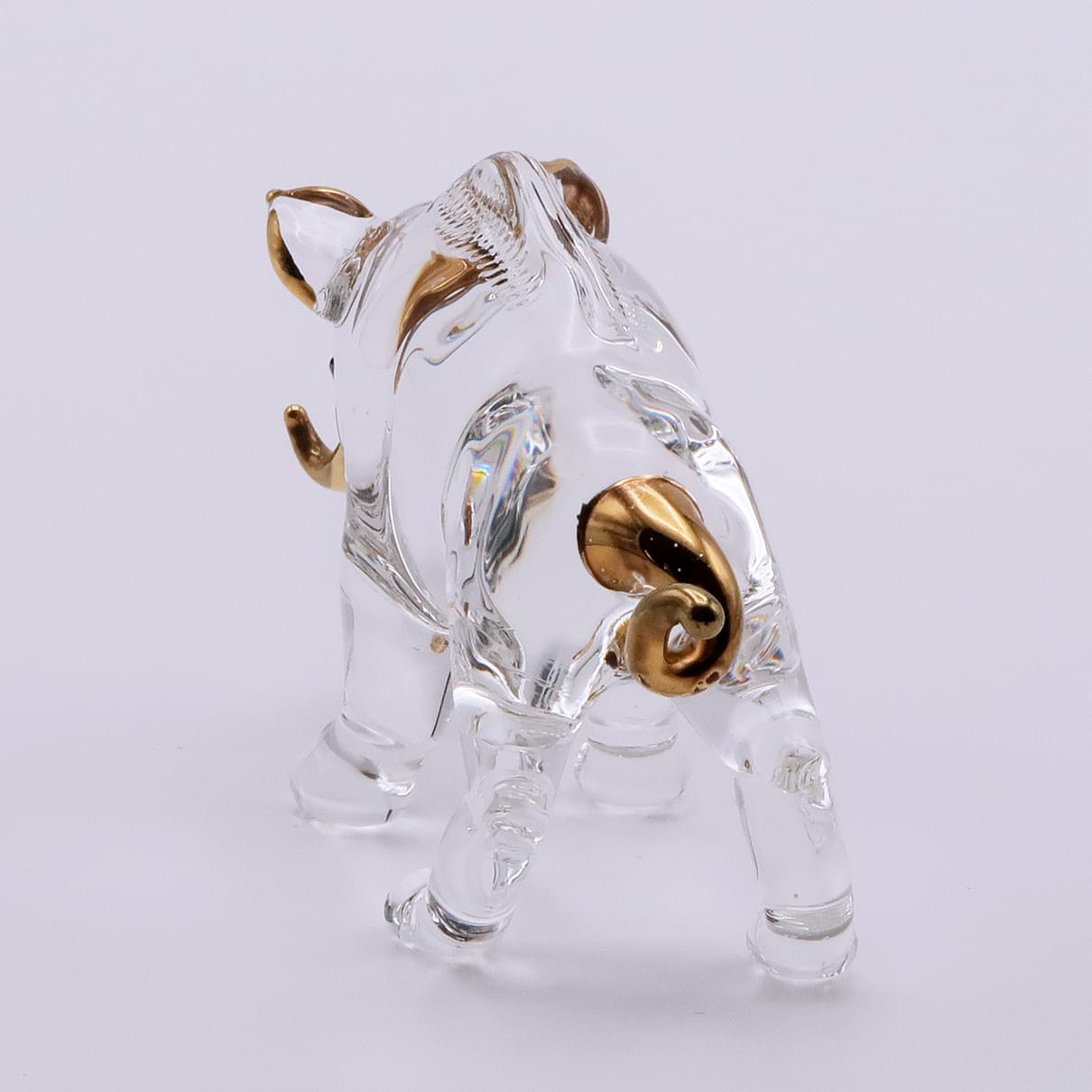 バーナーワークの技法で一体ずつ丁寧に仕上げられたガラス工芸。透明感のある輝きとアクセントとなる金彩が調和し、飾るだけで凛とした華やぎを添えます。干支は古来より家族や暮らしを守る象徴とされ、毎年のお正月飾りや贈り物としても喜ばれる存在。風水で良いとされる八角の鏡プレートに映える姿は、皆様のご多幸を呼び込みます。