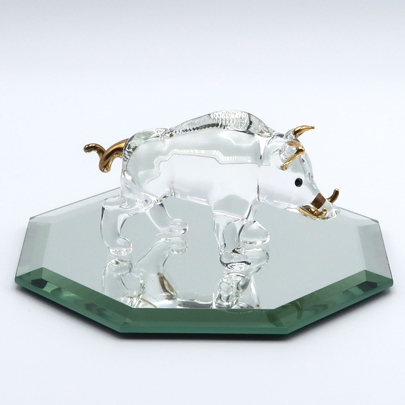 バーナーワークの技法で一体ずつ丁寧に仕上げられたガラス工芸。透明感のある輝きとアクセントの金彩が調和し、飾るだけで凛とした華やぎを与えます。干支は古来より家族や暮らしを守る象徴とされ、毎年のお正月飾りや贈り物としても喜ばれる存在。風水で吉とされる八角の鏡プレートに映える姿が、皆様のご多幸を呼び込みます。
