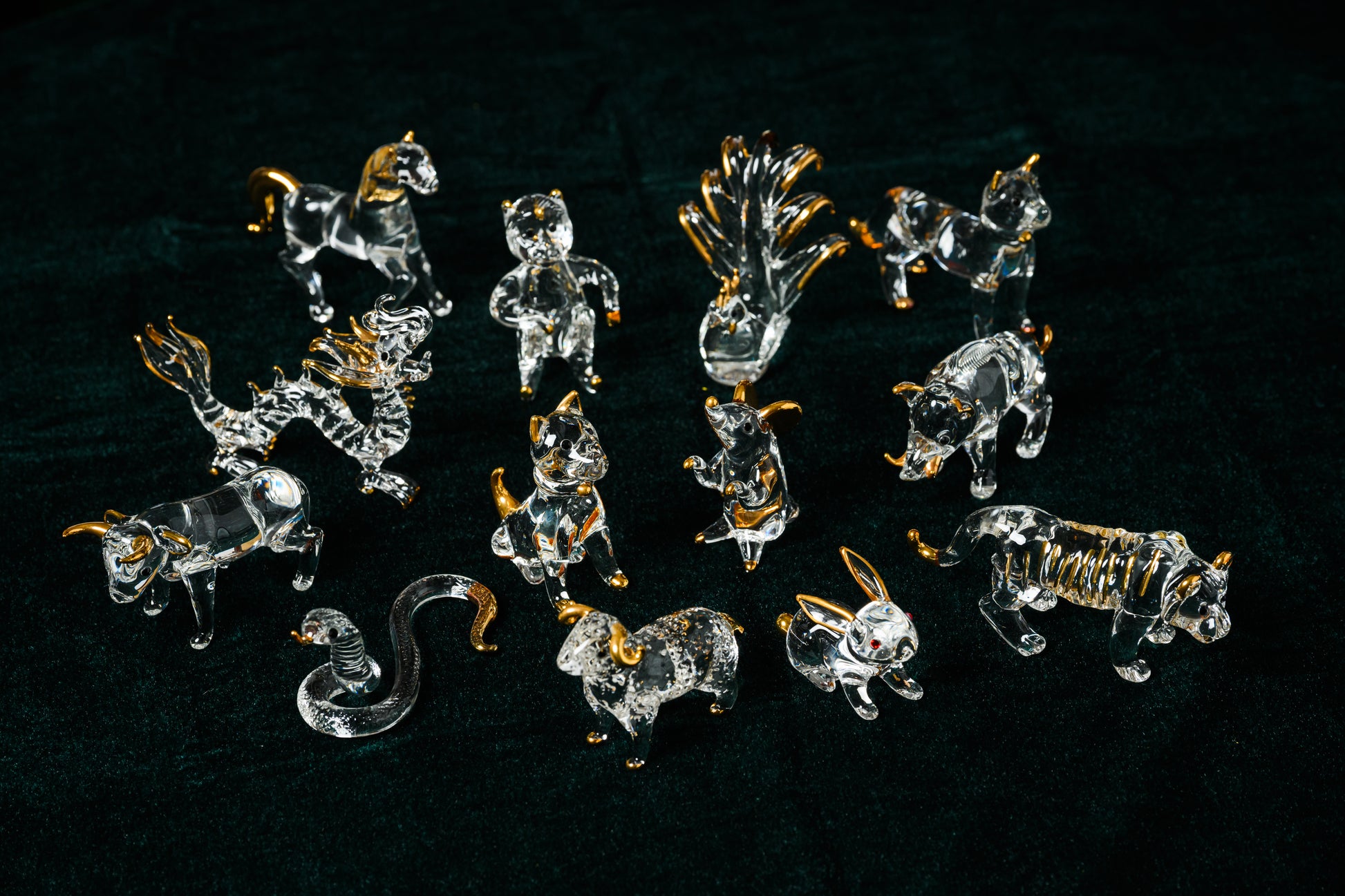 バーナーワークの技法で一体ずつ丁寧に仕上げられたガラス工芸。透明感のある輝きとアクセントの金彩が調和し、飾るだけで凛とした華やぎを与えます。干支は古来より家族や暮らしを守る象徴とされ、毎年のお正月飾りや贈り物としても喜ばれる存在。風水で吉とされる八角の鏡プレートに映える姿が、皆様のご多幸を呼び込みます。