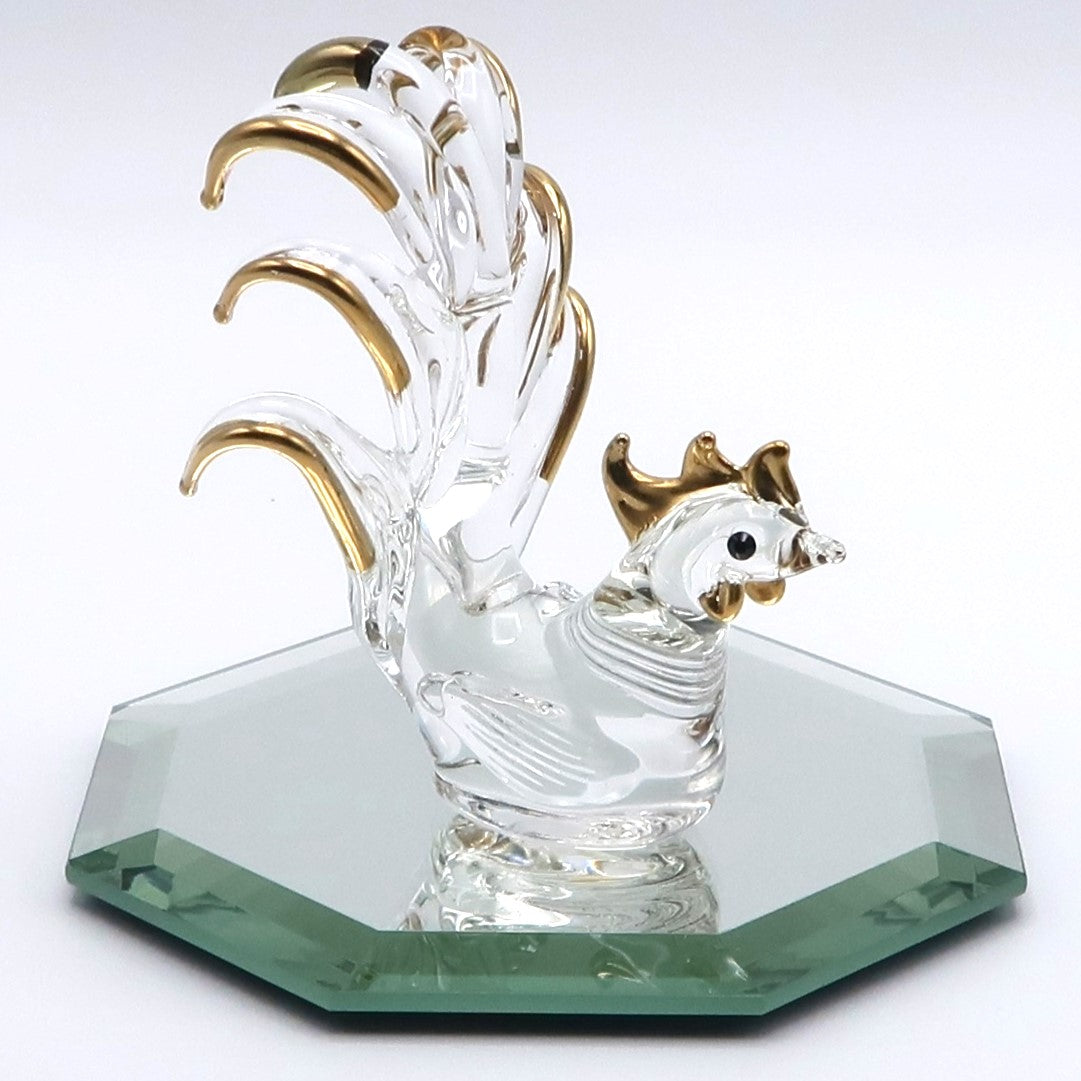 バーナーワークの技法で一体ずつ丁寧に仕上げられたガラス工芸。透明感のある輝きとアクセントの金彩が調和し、飾るだけで凛とした華やぎを与えます。干支は古来より家族や暮らしを守る象徴とされ、毎年のお正月飾りや贈り物としても喜ばれる存在。風水で吉とされる八角の鏡プレートに映える姿が、皆様のご多幸を呼び込みます。