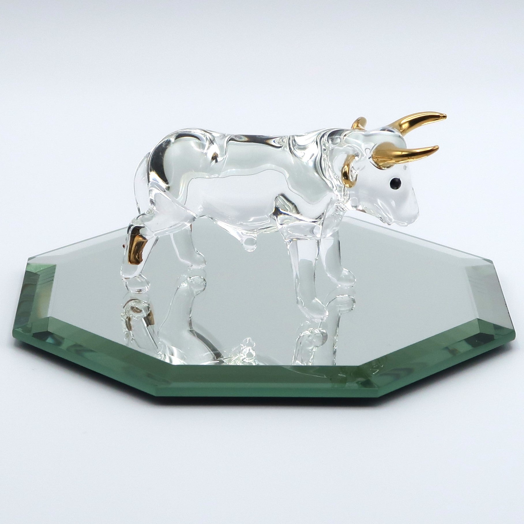 バーナーワークの技法で一体ずつ丁寧に仕上げられたガラス工芸。透明感のある輝きとアクセントの金彩が調和し、飾るだけで凛とした華やぎを与えます。干支は古来より家族や暮らしを守る象徴とされ、毎年のお正月飾りや贈り物としても喜ばれる存在。風水で吉とされる八角の鏡プレートに映える姿が、皆様のご多幸を呼び込みます。